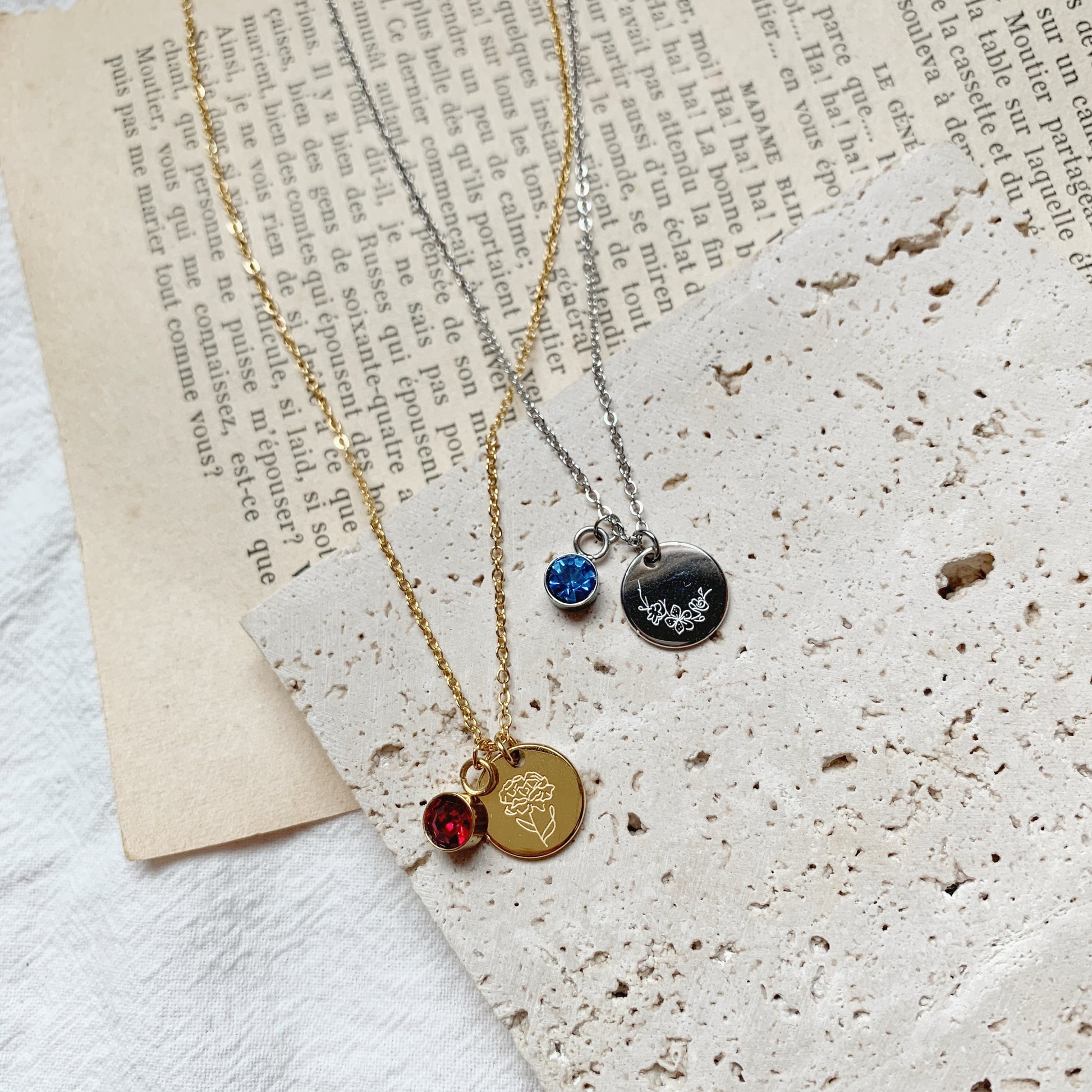 Take your necklace stack to the next level with something close to your heart - your birth flower, and customise it with a matching birthstone gem charm for an additional $4.
