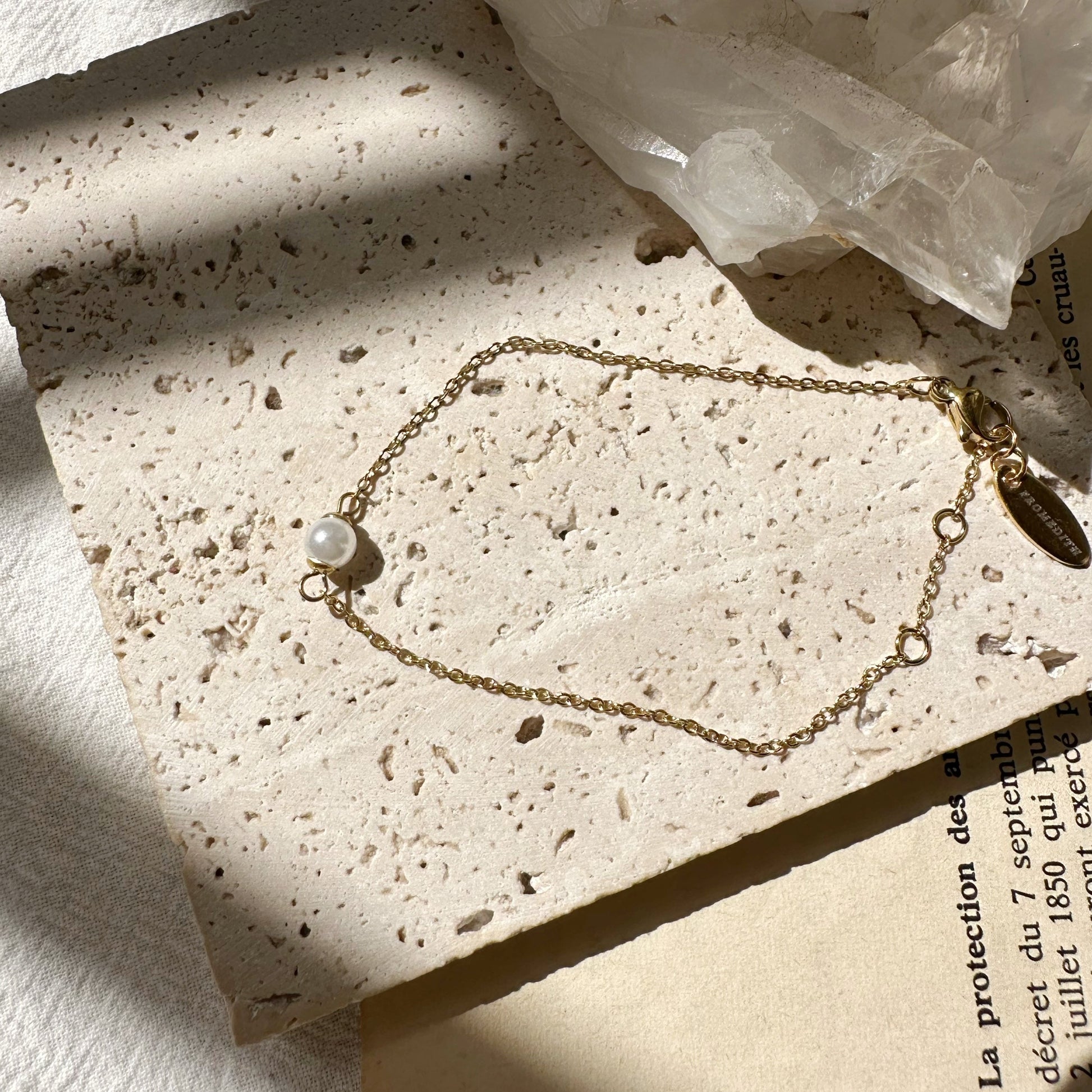Nothing as stackable and dainty as the Natalia Pearl Bracelet! Best of all? Wear it in the shower all you want - it's stainless steel and thus, water-resistant!