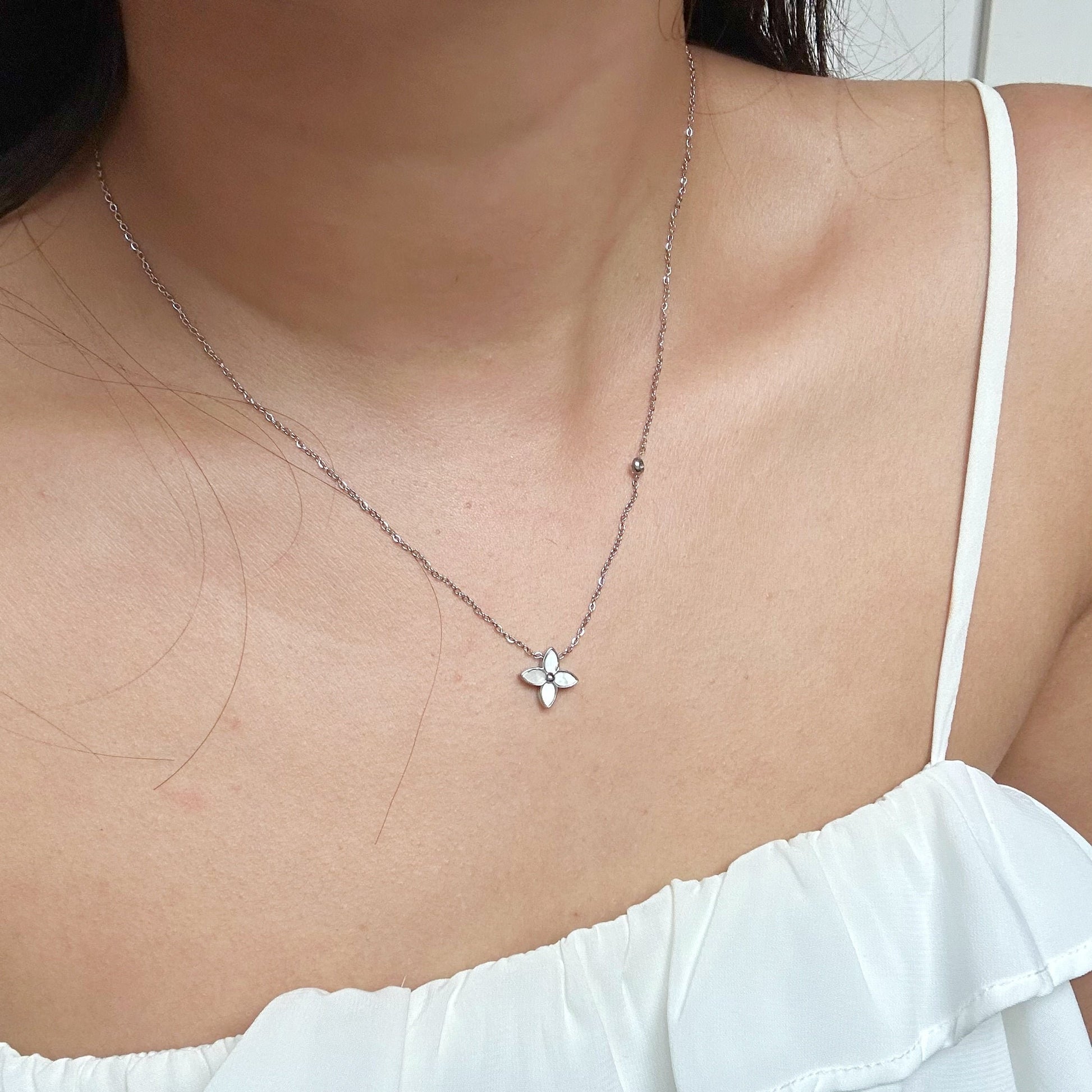 Intricately designed as the perfect everyday piece, the Yuki Necklace features a unique clover charm, together with an asymmetrical circular charm on the side for a cute twist to your other necklaces. As usual, it's stainless steel - no more worrying about rusting and tarnishing even if you wear it in the shower!
